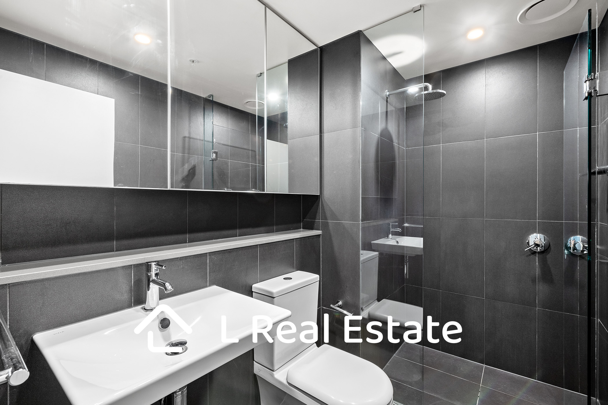 A stylish central bathroom with rain shower