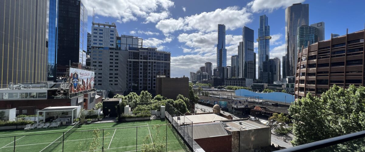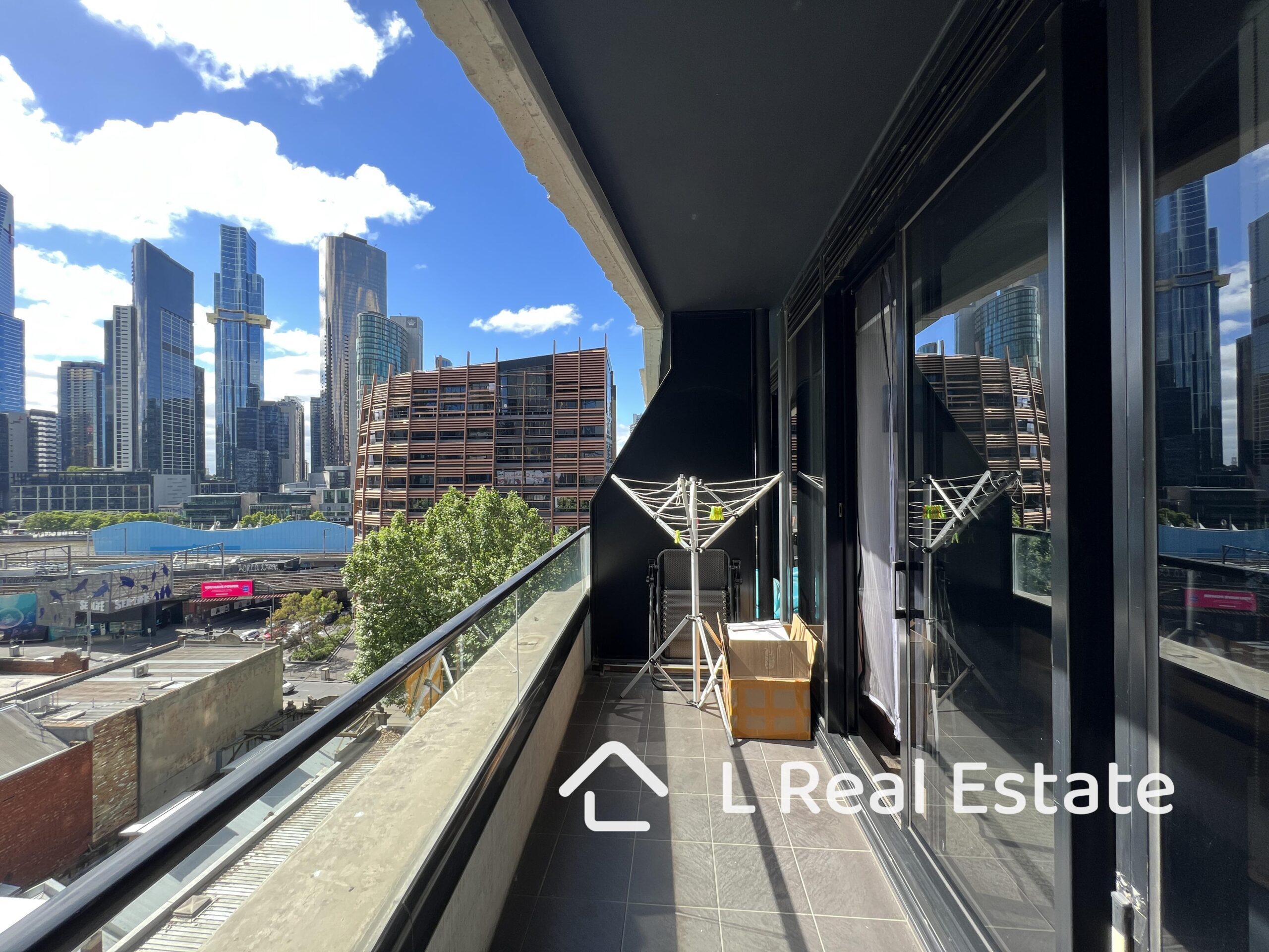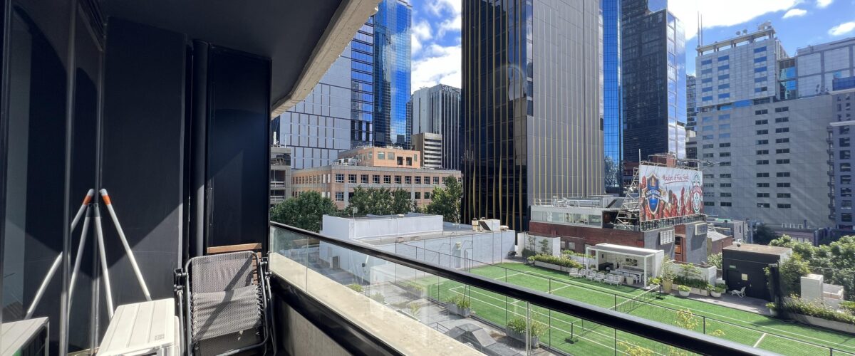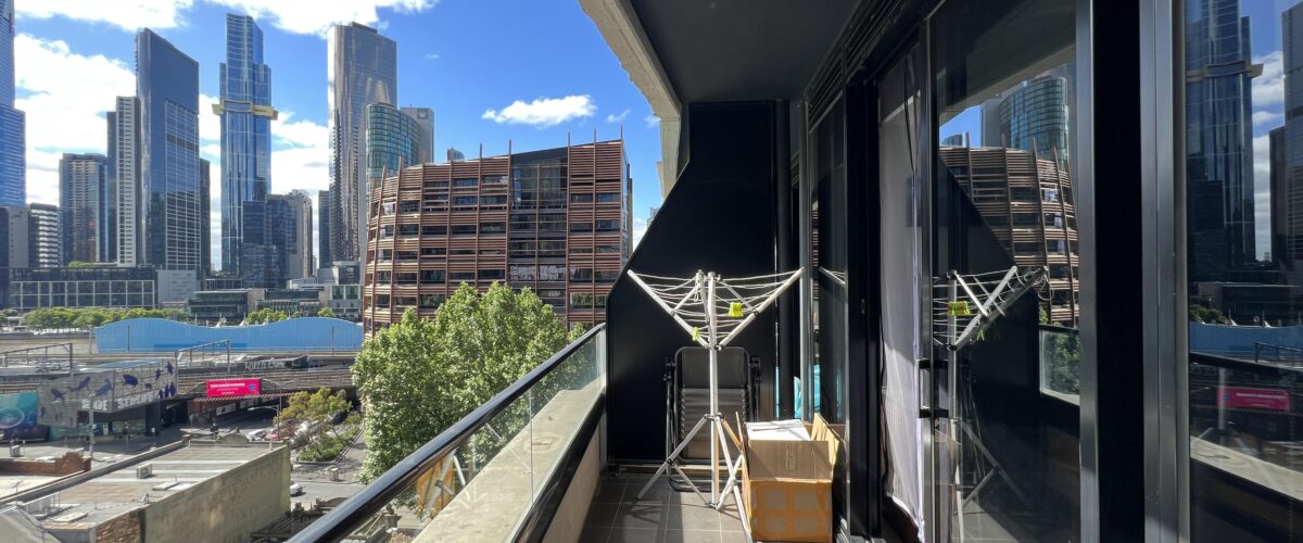 – Covered balcony with views across the Yarra to Eureka Tower